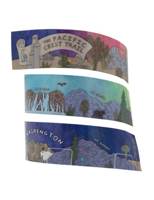 These stickers were created in collaboration with artist Madeleine Mathis to celebrate the Pacific Crest Trail. We are dedicated supporters of the PCT and wanted to make something for all the hikers out on the Pacific Crest. Whether you’re planning a thru-hike or just want some decoration, this Rim Wrap will make a great addition to any size BearVault® canister!